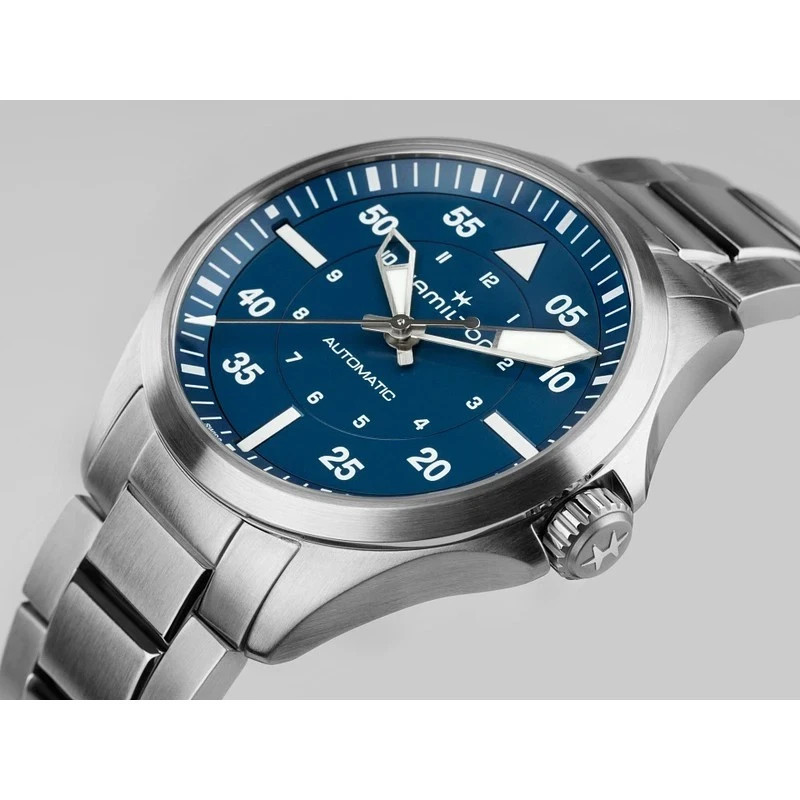 The Hamilton H76305140 is a Khaki Aviation pilot watch with a versatile 39mm case and striking blue dial. It delivers classic cockpit styling with modern Swiss build quality – a great choice for everyday wear and for collectors who want a clean, legible pilot design.