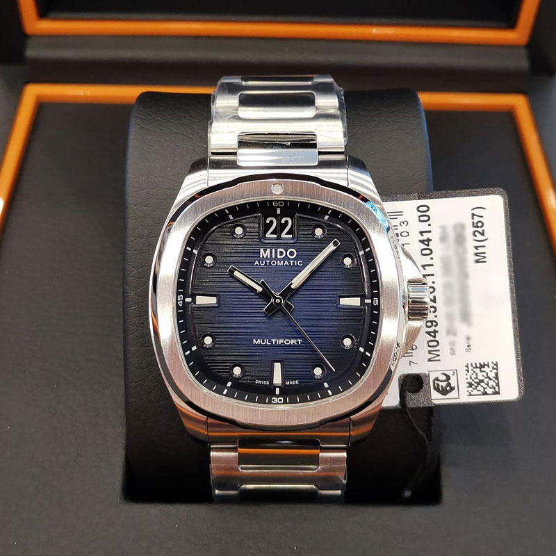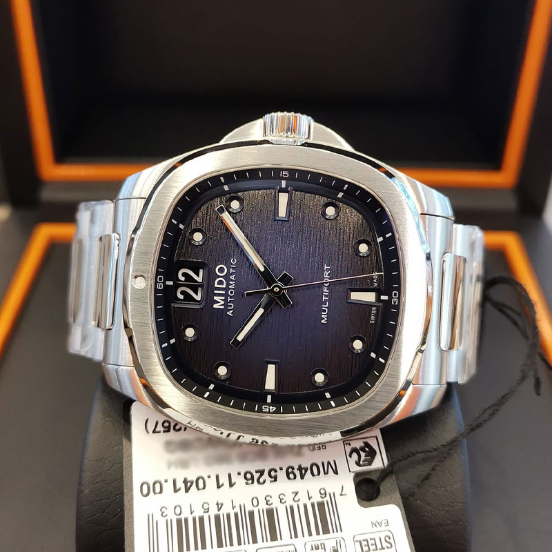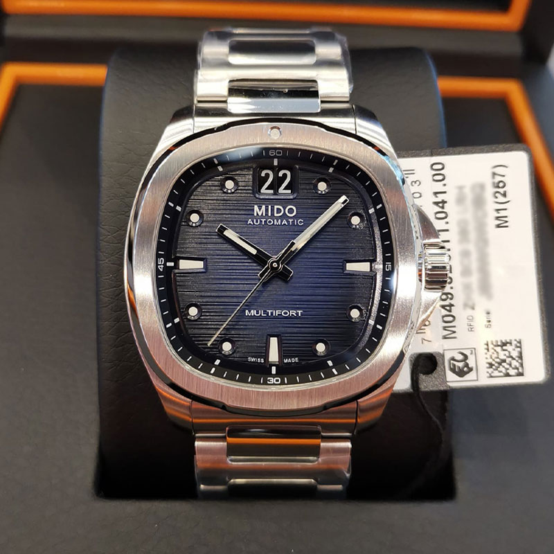 A brilliant flashback! Born from Mido's extraordinary heritage, the TV-shaped case returns to the centre stage for the Multifort TV Big Date, as intense as it is precise, thanks to its formidable mechanical movement. The modern and dynamic design of this Swiss watch is underlined by a striking horizontal brushed finish dial and, along wtih its distinctive function: the BIG DATE at 12 o'clock. Its formidable latest-generation automatic movement, Calibre 80 is equipped with a high-tech balance spring in Nivachron™ which offers outstanding resistance to shocks and magnetic fields.